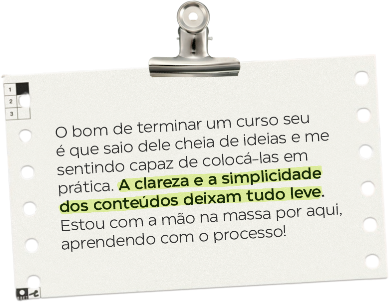Ao final de todos os cursos, você sai com estratégias prontas pra colocar em prática