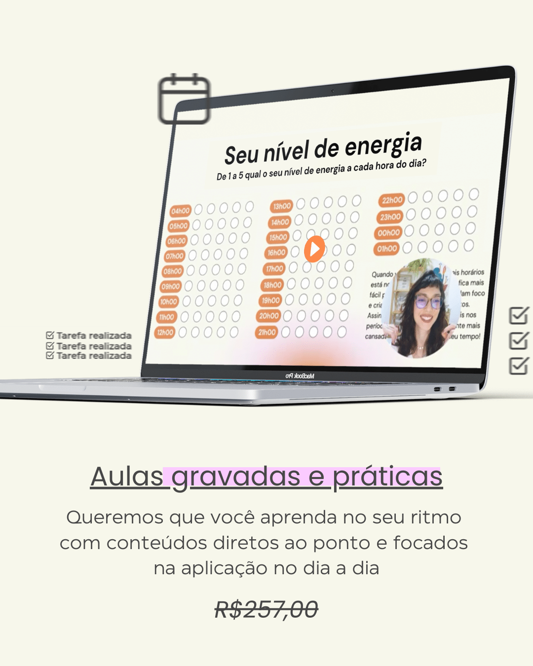 Apenas planejamento que funciona, rotina equilibrada e um sistema pra organizar tudo por você!