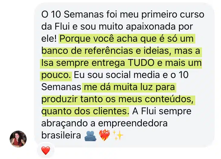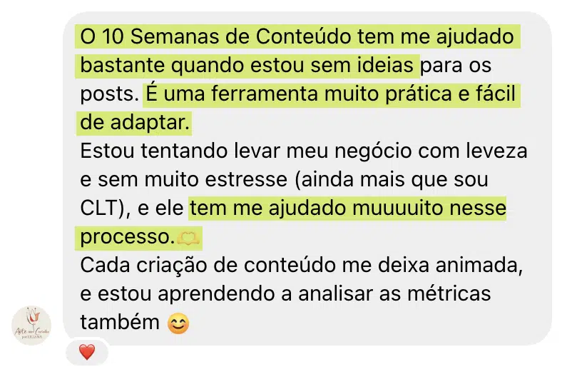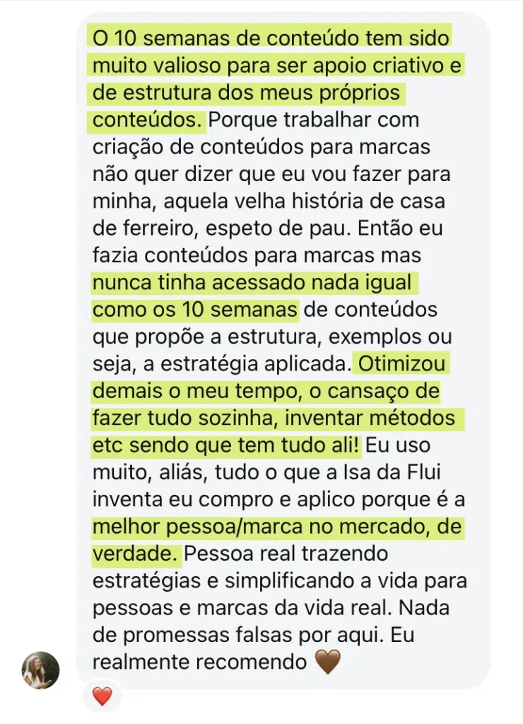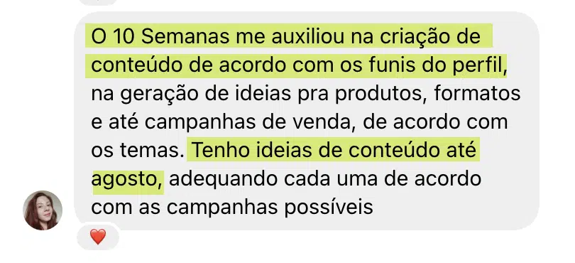 “Nunca tinha acessado nada igual ao 10 semanas, conteúdos com estrutura pronta, exemplos e estratégia aplicada.”