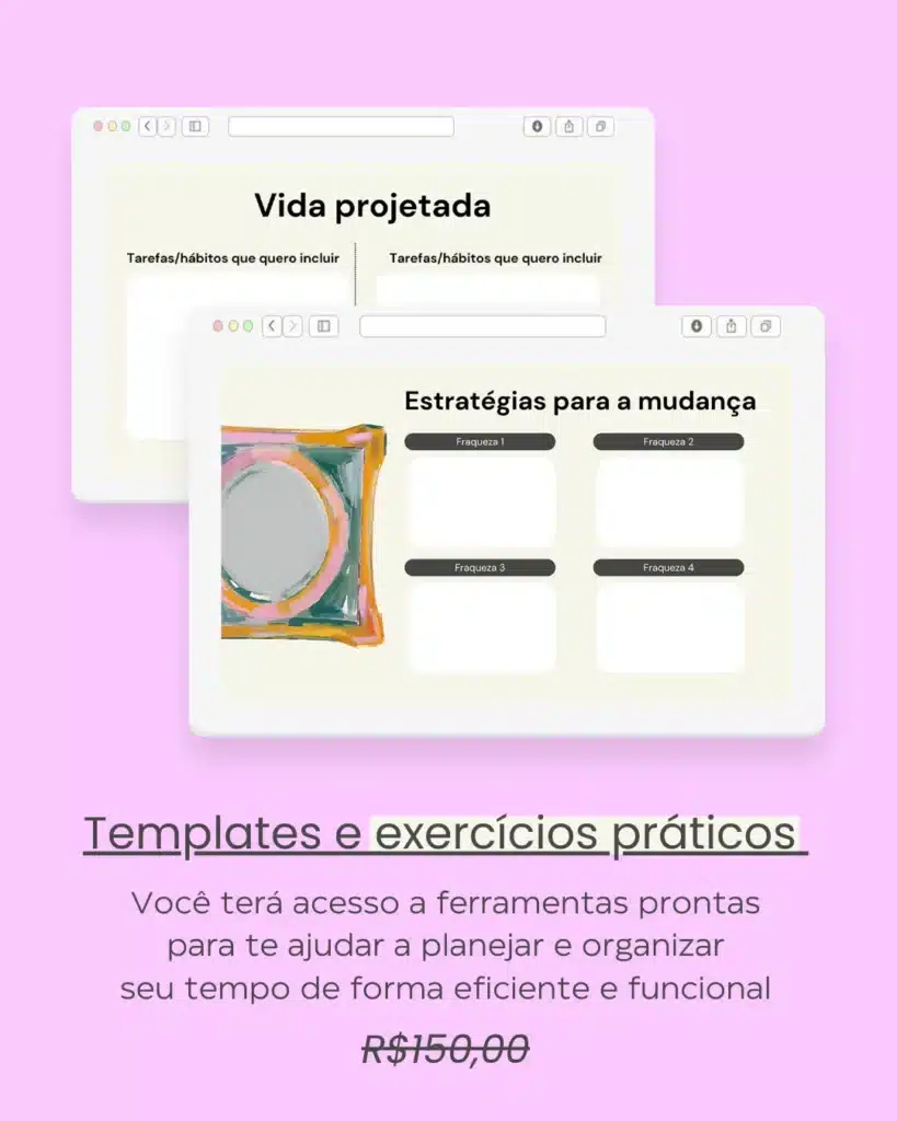 Templates e exercícios pra idealizar sua rotina de forma visual e prática