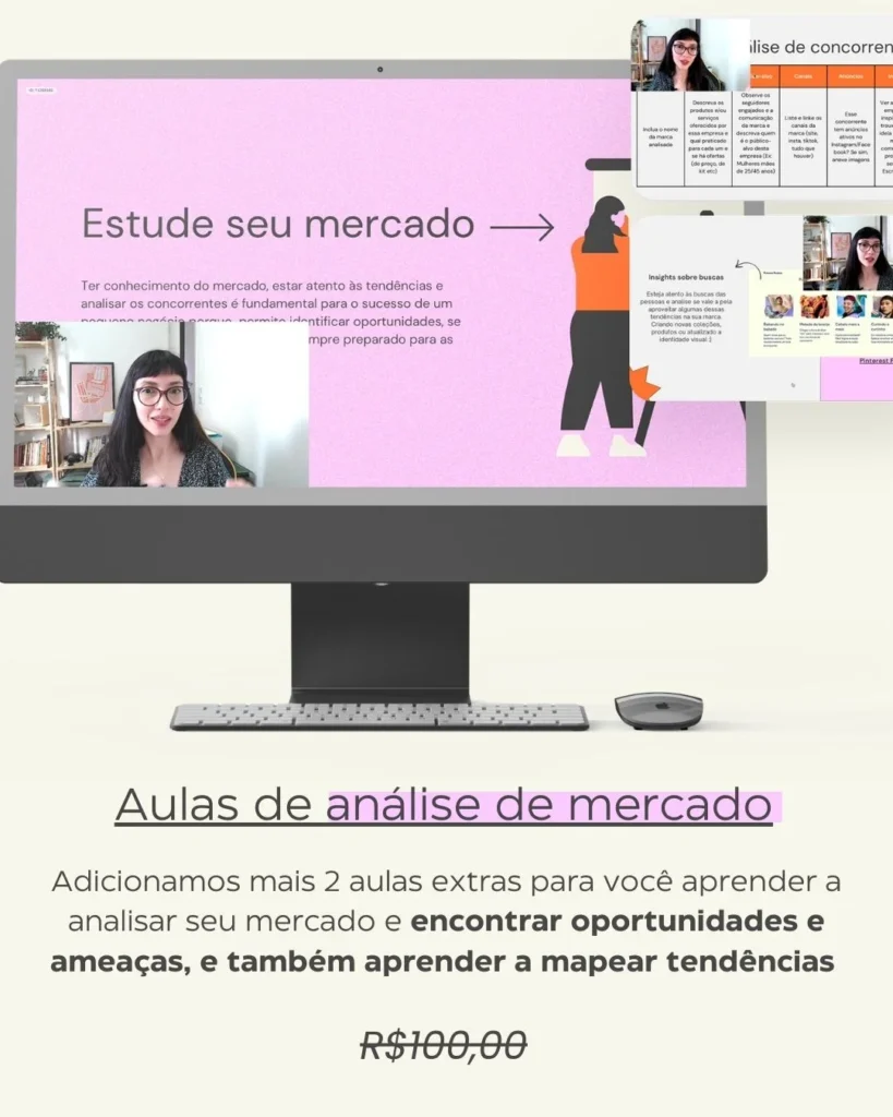 Ficar de olho no que está acontencendo no seu mercado e nos concorrentes é necessário pra que você enxergue ameaças e oportunidades para proteger e alavancar seu negócio. Em 2 aulas bônus você vai aprender a analisar as tendências de mercado e seus concorrentes para encontrar oportunidades pro seu negócio.