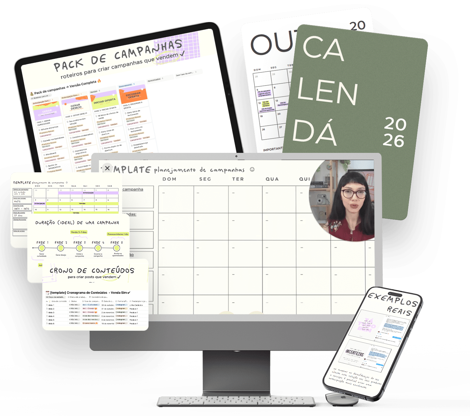 Pra criar uma campanha de vendas que realmente te dê resultados, você precisa de métodos e ferramentas! Você terá acesso a mais de 10 ferramentas para planejar e idealizar sua campanha, definindo os elementos estratégicos que vão te ajudar a vender.
