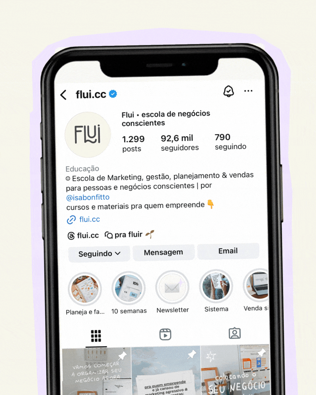 A Isa Bonfitto, fundadora da Flui e criadora dos cursos e materiais, tem formação em Educação, Pós-Graduação em Marketing, Graduanda em Gestão comercial e anos de atuação como consultora para pequenos negócios que vendem com propósito.