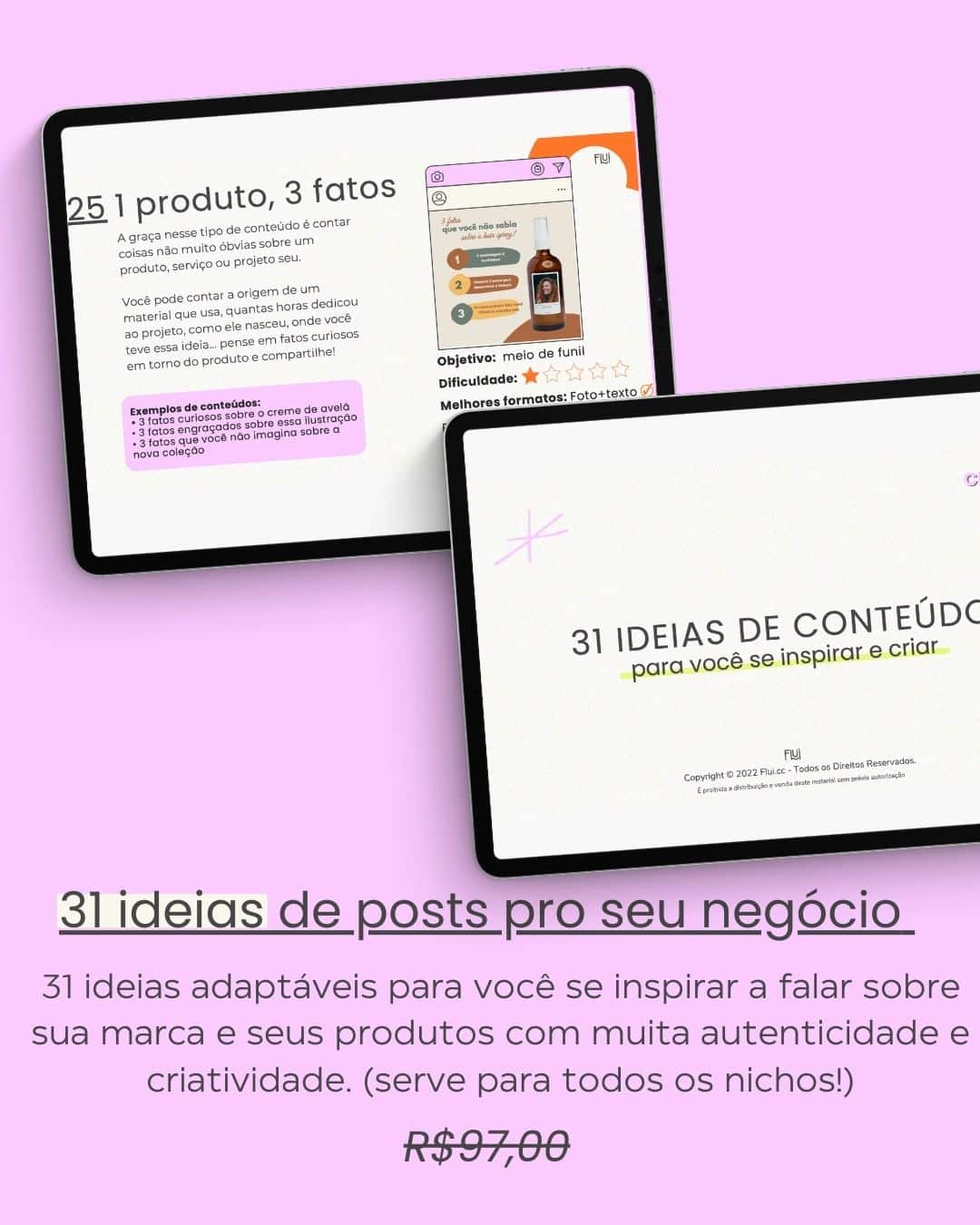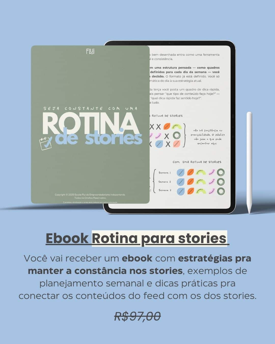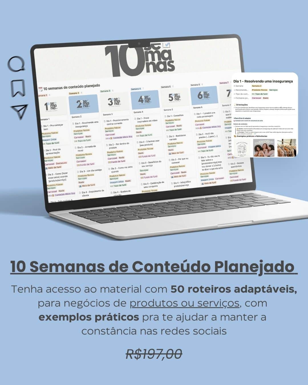 Mais de 50 roteiros prontos, reutilizáveis infinitmente com temas, formatos e legendas pra facilitar a consistência no feed e nos stories através da rotina de stories!