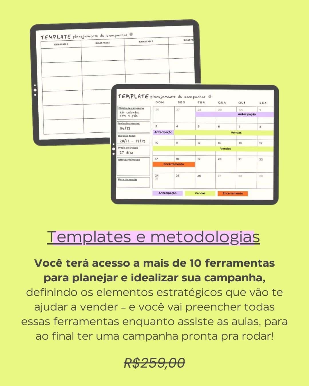Método com ferramentas e templates pra criar campanhas que geram picos de venda ao longo do ano – para manter seu negócio financeiramente sustentável.
